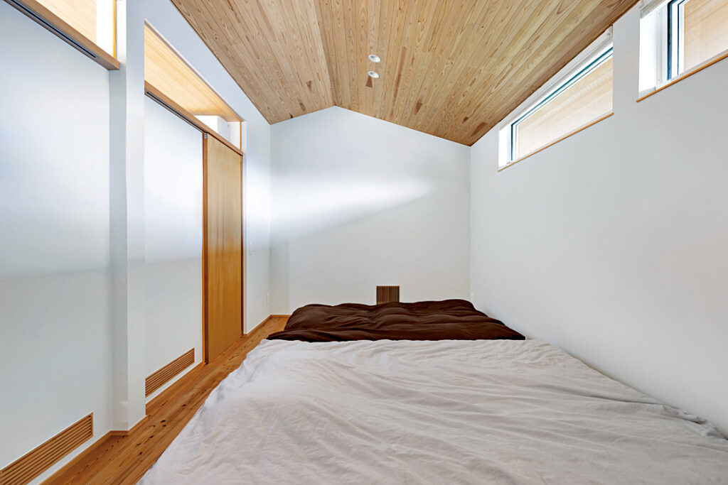 2階の個室。現在は家族の寝室として利用しているが、子供たちが成長したら部屋を分けてそれぞれの個室にする予定。